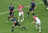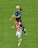 Чемпионат мира по футболу в России FIFA 2018. Финал. Матч между сборными Франции и Хорватии прошел на стадионе "Лужники". Игрок сборной Франции Оливье Жиру (слева) и игрок сборной Хорватии Марсело Брозович (справа) во время матча.