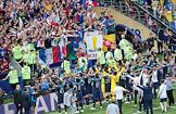 Чемпионат мира по футболу в России FIFA 2018. Финал. Матч между сборными Франции и Хорватии прошел на стадионе "Лужники". Игроки сборной Франции со своими болельщиками после матча.