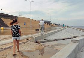 Затопленная после ливня набережная у стадиона "Волгоград Арена".