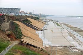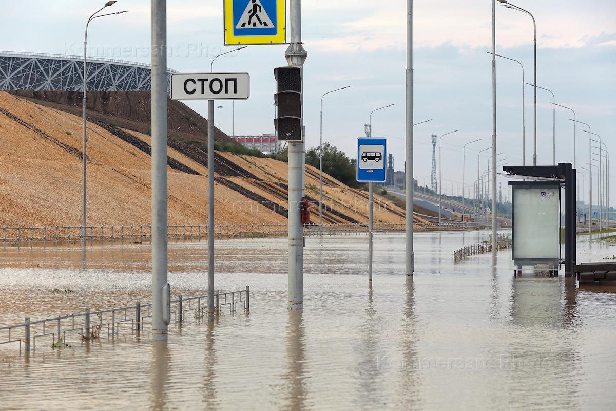 Затопленная после ливня набережная у стадиона "Волгоград Арена".