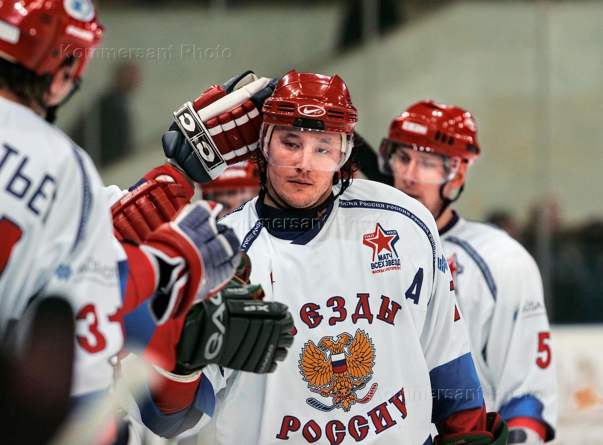 Звезды российской Суперлиги провели матч против звезд НХЛ "Звезды российского хоккея - Звезды мирового хоккея". Матч состоялся на Малой спортивной арене "Лужники". Со счетом 5 : 4 победили россияне. Хоккеист НХЛ на скамье запасных.