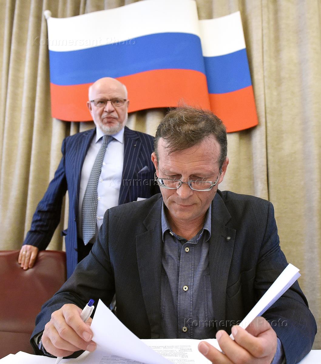 Специальное заседание Совета при президенте России по развитию гражданского общества и правам человека на тему "Обеспечение экологических прав граждан при обращении с отходами" прошло в администрации президента России. Председатель Совета при президенте России по развитию гражданского общества и правам человека Михаил Федотов (слева) и исполнительный директор Гринпис России Сергей Цыпленков (справа) перед началом заседания.