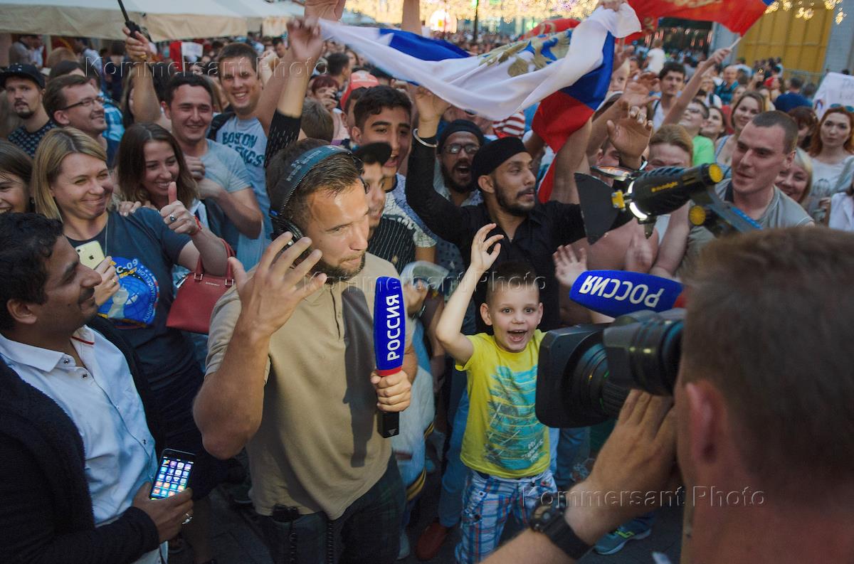 Чемпионат мира по футболу в России FIFA 2018. Финал. Матч между сборными Хорватии и Франции на стадионе "Лужники". Болельщики после матча на Никольской улице.