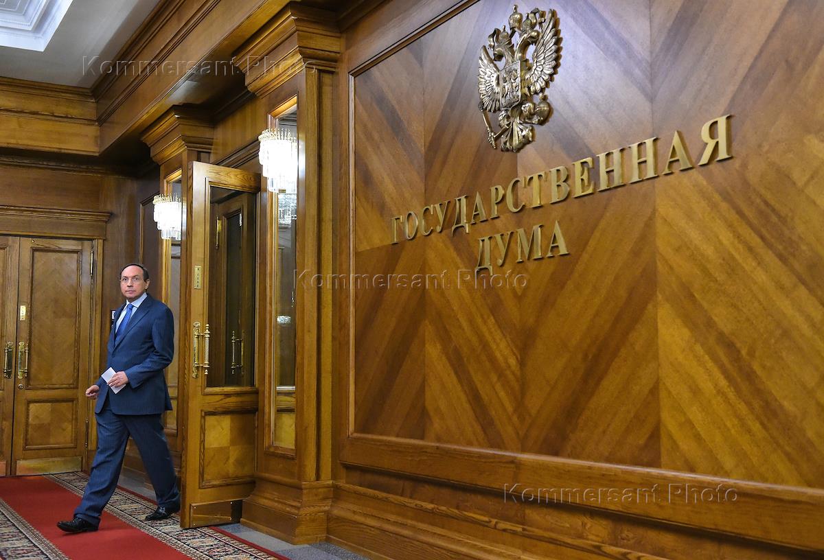 Заседание депутатской группы по связям с Конгрессом США в Государственной думе (ГД) России. Председатель комитета ГД по образованию и науке Вячеслав Никонов перед началом заседания.