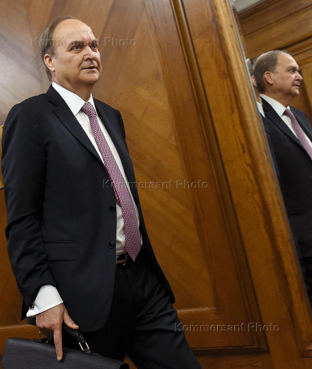 Заседание депутатской группы по связям с Конгрессом США в Государственной думе (ГД) России. Посол России в США Анатолий Антонов перед началом заседания.