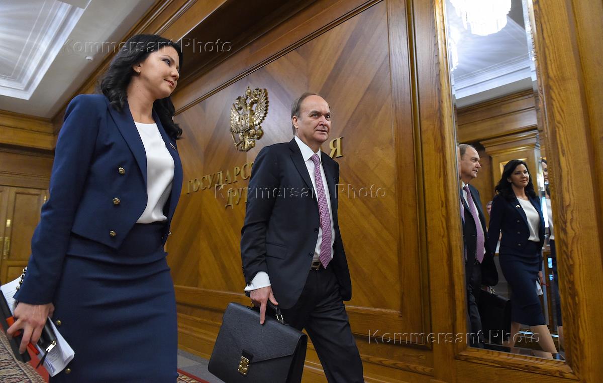 Meeting of the deputy group for relations with the US Congress in the State Duma of Russia. Russian Ambassador to the United States Anatoly Antonov before the meeting.