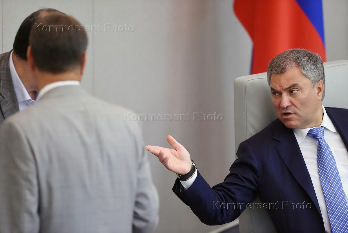 Пленарное заседание Государственной думы (ГД) России. Председатель ГД России Вячеслав Володин во время заседания.