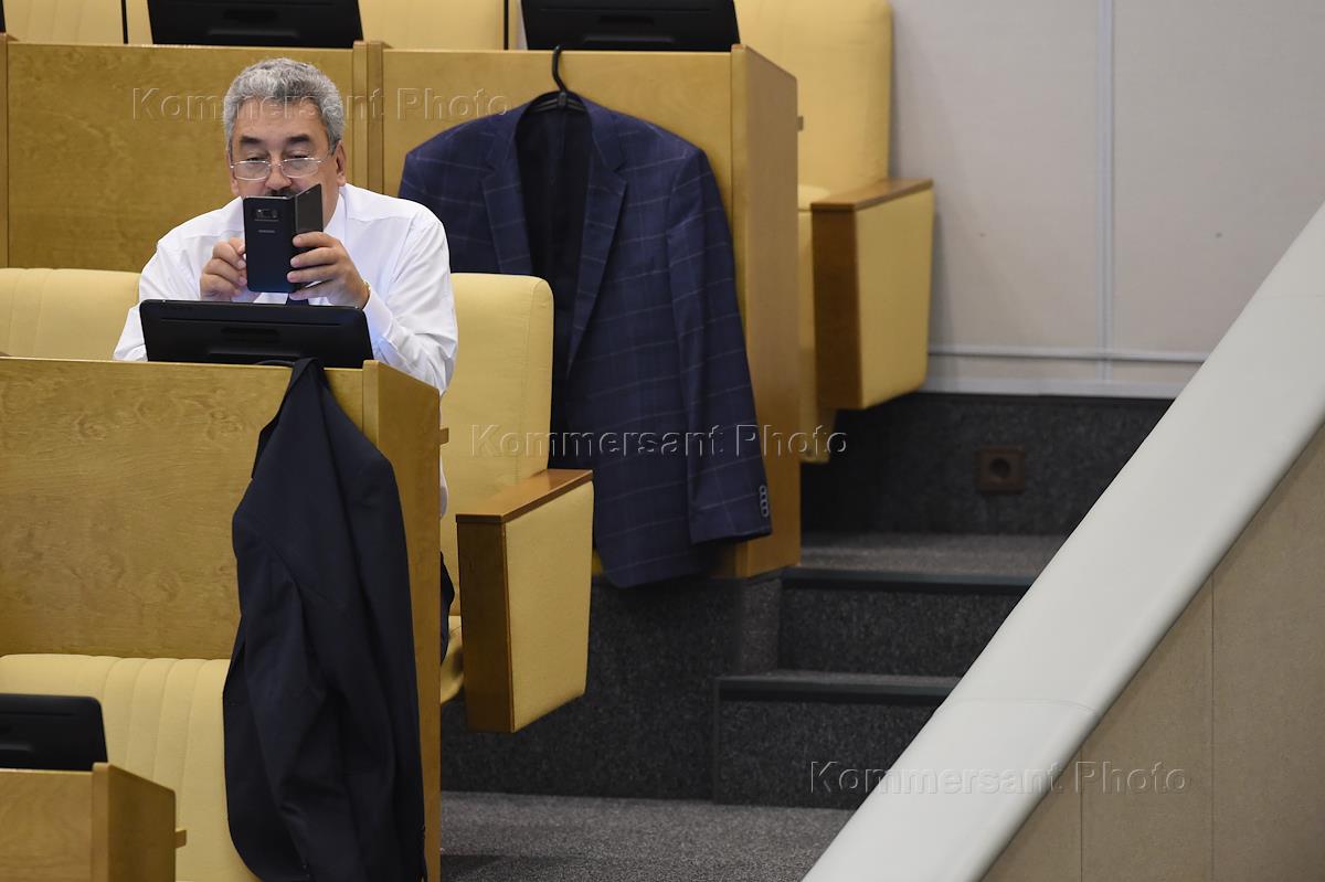 Plenary session of Russian State Duma. Chairman of Russian State Dua committee for building Pavel Krashennikov before the session.