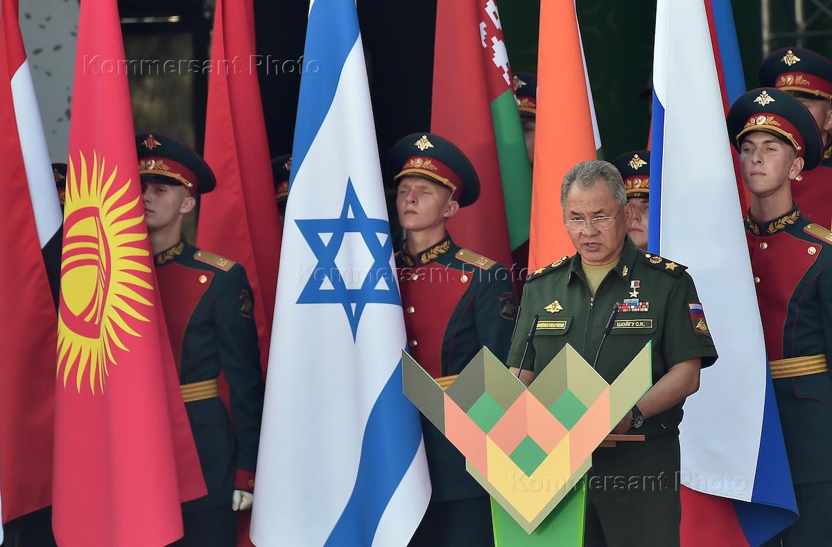 Торжественная церемония открытия Армейских международных игр "АрМИ-2018" и 1-й этап конкурса "Танковый биатлон" прошли на территории военного полигона "Алабино". Министр обороны России Сергей Шойгу во время церемонии.