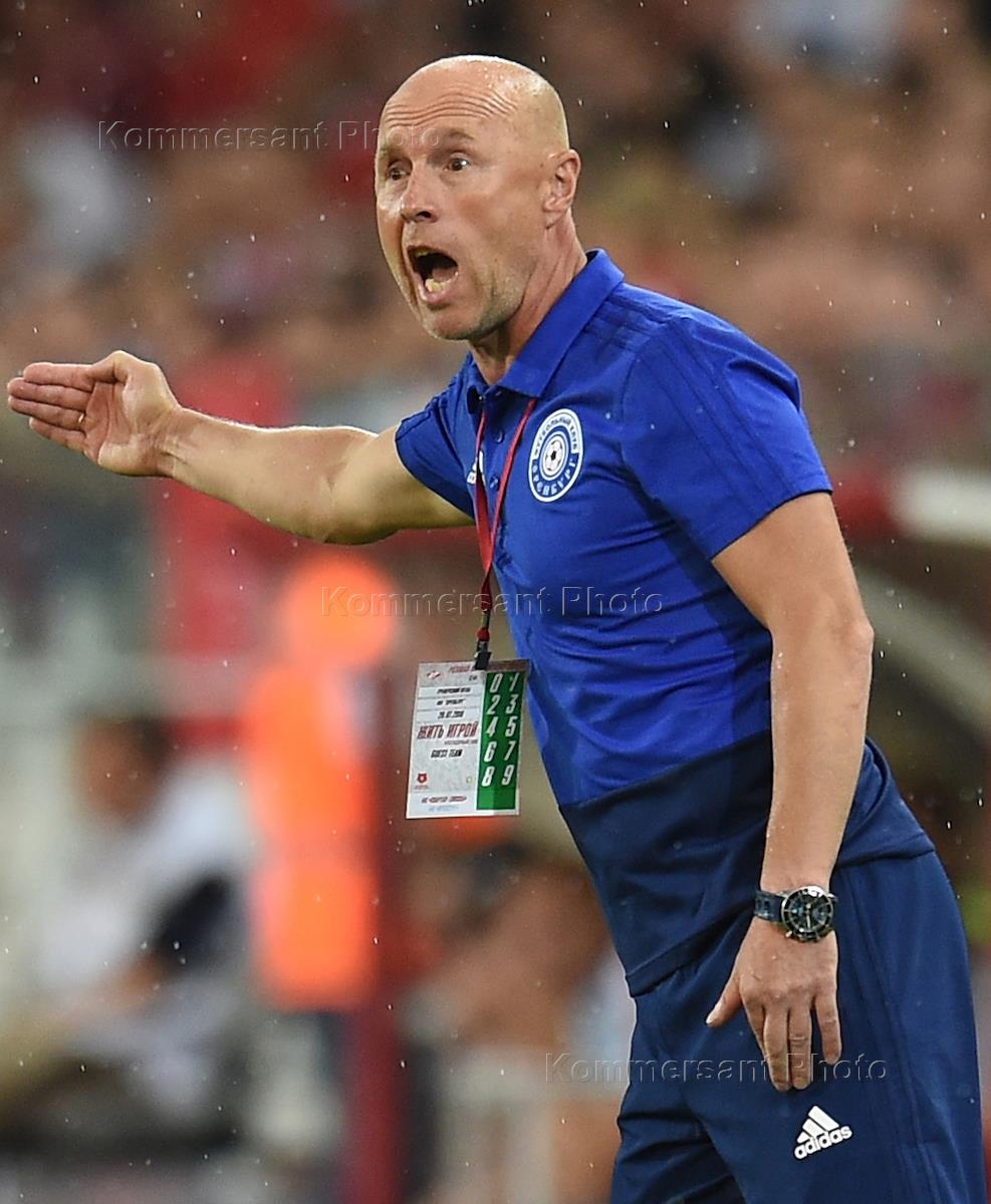 РОСГОССТРАХ - Чемпионат России по футболу 2018/2019. 1 тур. Матч между командами "Спартак" (Москва)и "Оренбург" (Оренбург) прошел на стадионе "Открытие Арена". Главный тренер команды "Оренбург" Владимир Федотов во время матча.