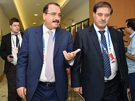 Конгресс сирийского национального диалога в Сочи. Научный руководитель Института востоковедения РАН Виталий Наумкин (слева) и заместитель спецпосланника Генерального секретаря ООН по Сирии Рамзи Эззелдин Рамзи (справа) на десятой международной встрече астанинского формата по Сирии в гостинице "Рэдиссон Блю Резорт".