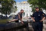 Празднование Дня Военно-Морского Флота (ВМФ) России в Санкт-Петербурге. Зрители во время военно-морского парада.