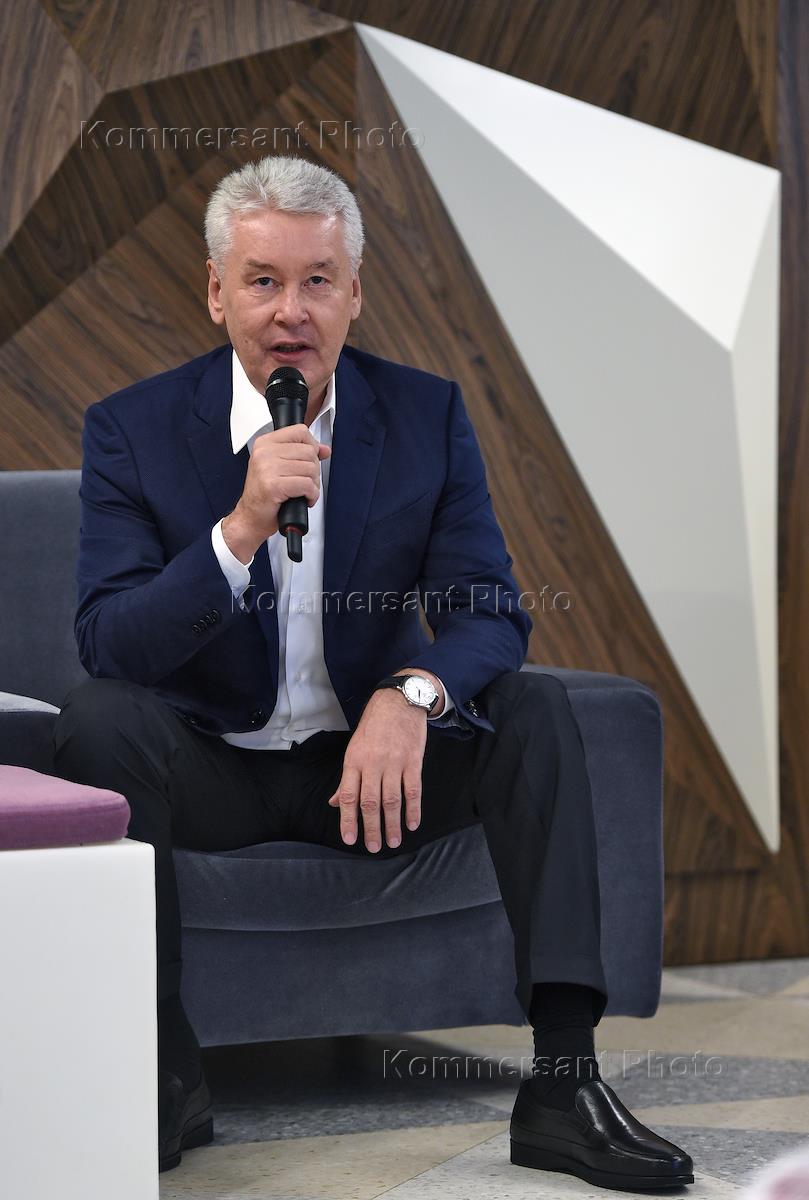 Round table session of Moscow Mayor candidate Sergey Sobyanin for Destruction of inequality of Moscow districts development at Sergey Sobyanin election headquarters. Moscow Mayor candidate and Action Mayor of Moscow Sergey Sobyanin during the session.