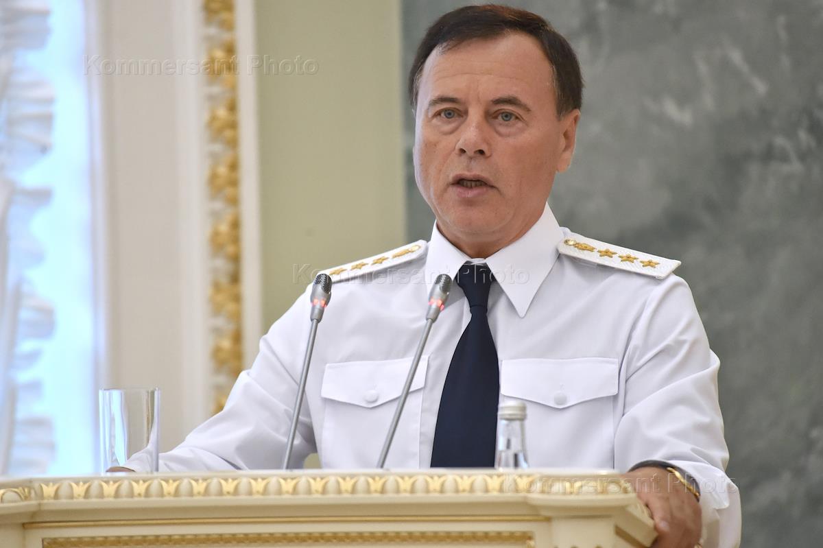 A meeting of the board of the General Prosecutor's Office of Russia, dedicated to the results of the work of the Prosecutor's Office in the first half of 2018 and the tasks of increasing the efficiency of prosecutorial activities in the second half of 2018. Deputy Prosecutor General of Russia Viktor Grin during a meeting.