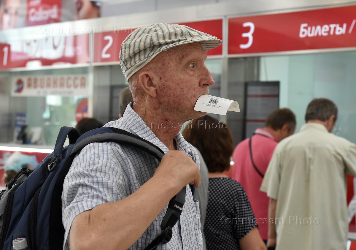 Жанровая фотография. Белорусский вокзал. Пассажиры у касс по продажи билетов на аэроэкспресс.