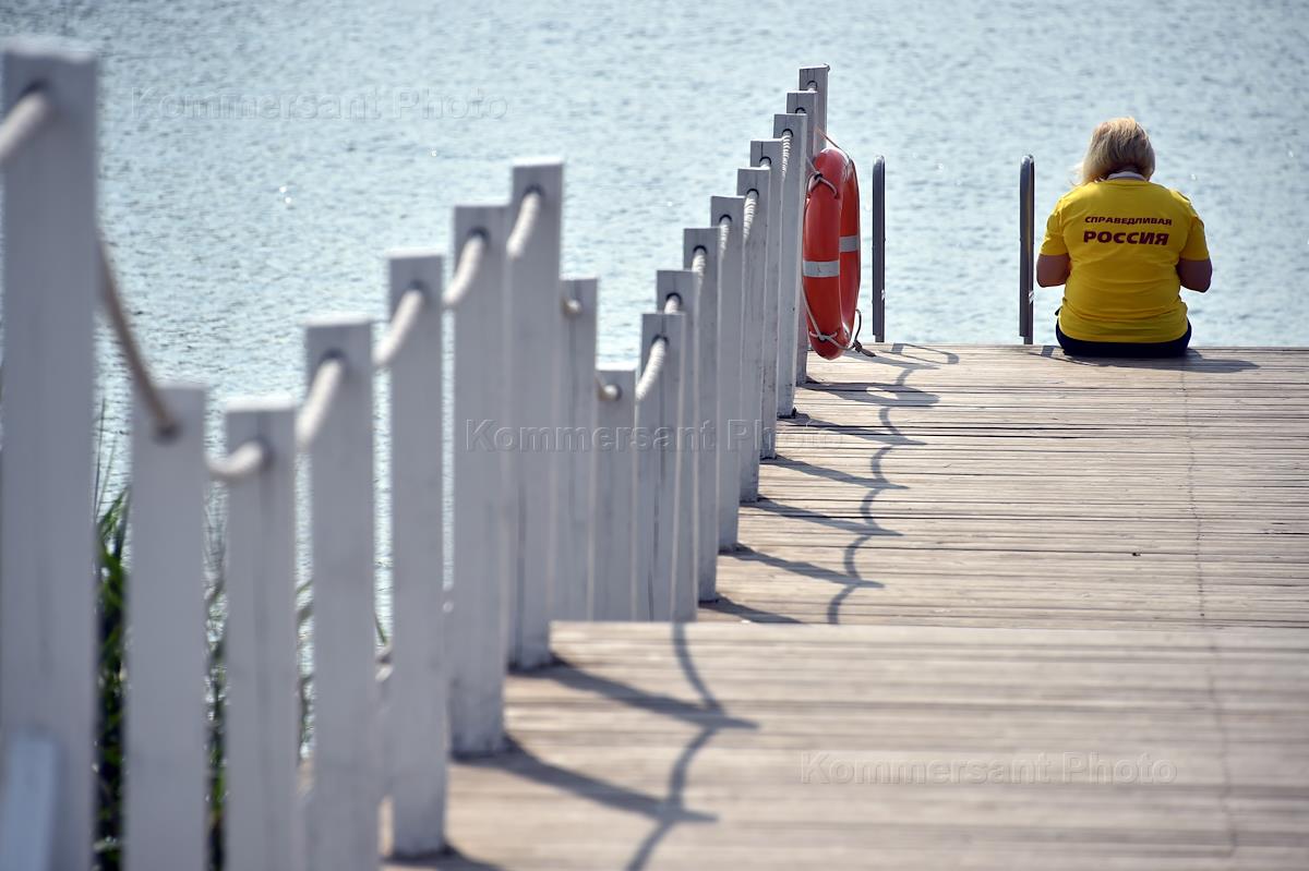 Всероссийский молодежный образовательный форум "Территория смыслов на Клязме". Участник форума на берегу реки.