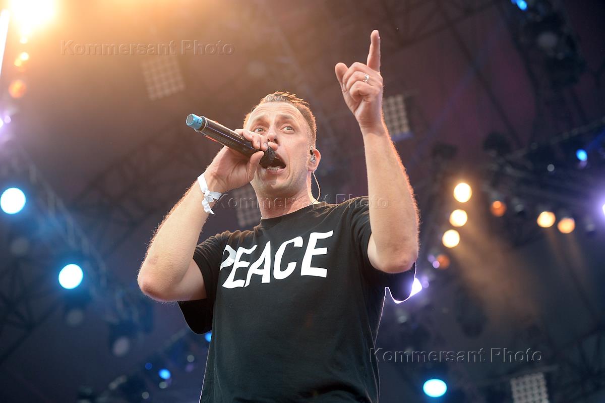 Музыкальный рок-фестиваль "Нашествие" 2018 года прошел в поселке Большое Завидово. Вокалист группы Animal Джаz Александр "Михалыч" Красовицкий во время выступления.