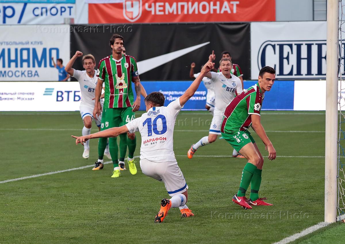 РПЛ. Чемпионат России по футболу 2018/2019. 2 тур. Матч между командами "Динамо" (Москва) и "Рубин" (Казань) на стадионе "Арена Химки". Игрок команды "Динамо" Федор Черных (в центре) во время матча.