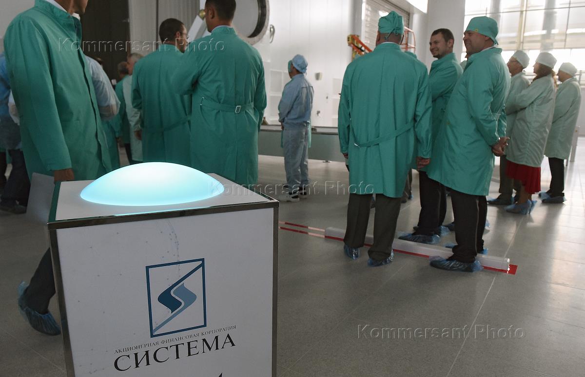 Церемония открытия высокотехнологичного цеха сборки модулей полезной нагрузки (МПН) на Ярославском радиозаводе. Председатель совета директоров ПАО "АФК "Система" Владимир Евтушенков во время церемонии.