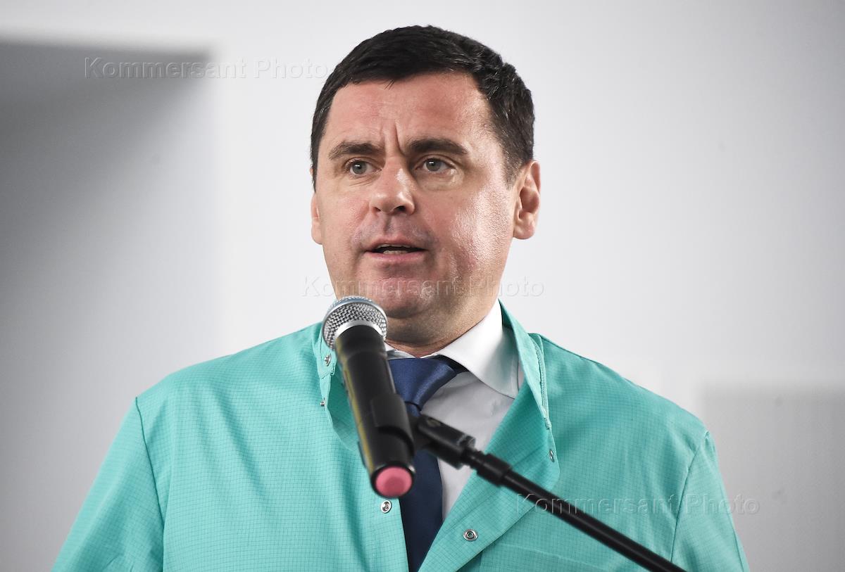 Церемония открытия высокотехнологичного цеха сборки модулей полезной нагрузки (МПН) на Ярославском радиозаводе. Губернатор Ярославской области Дмитрий Миронов во время церемонии.