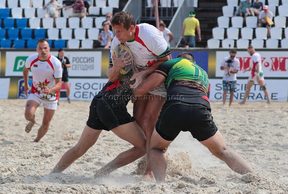 Чемпионат Европы по пляжному регби прошел в Центре пляжных видов спорта "Динамо" на Водном стадионе. Матч между мужскими сборными командами Белоруссии и Словении.