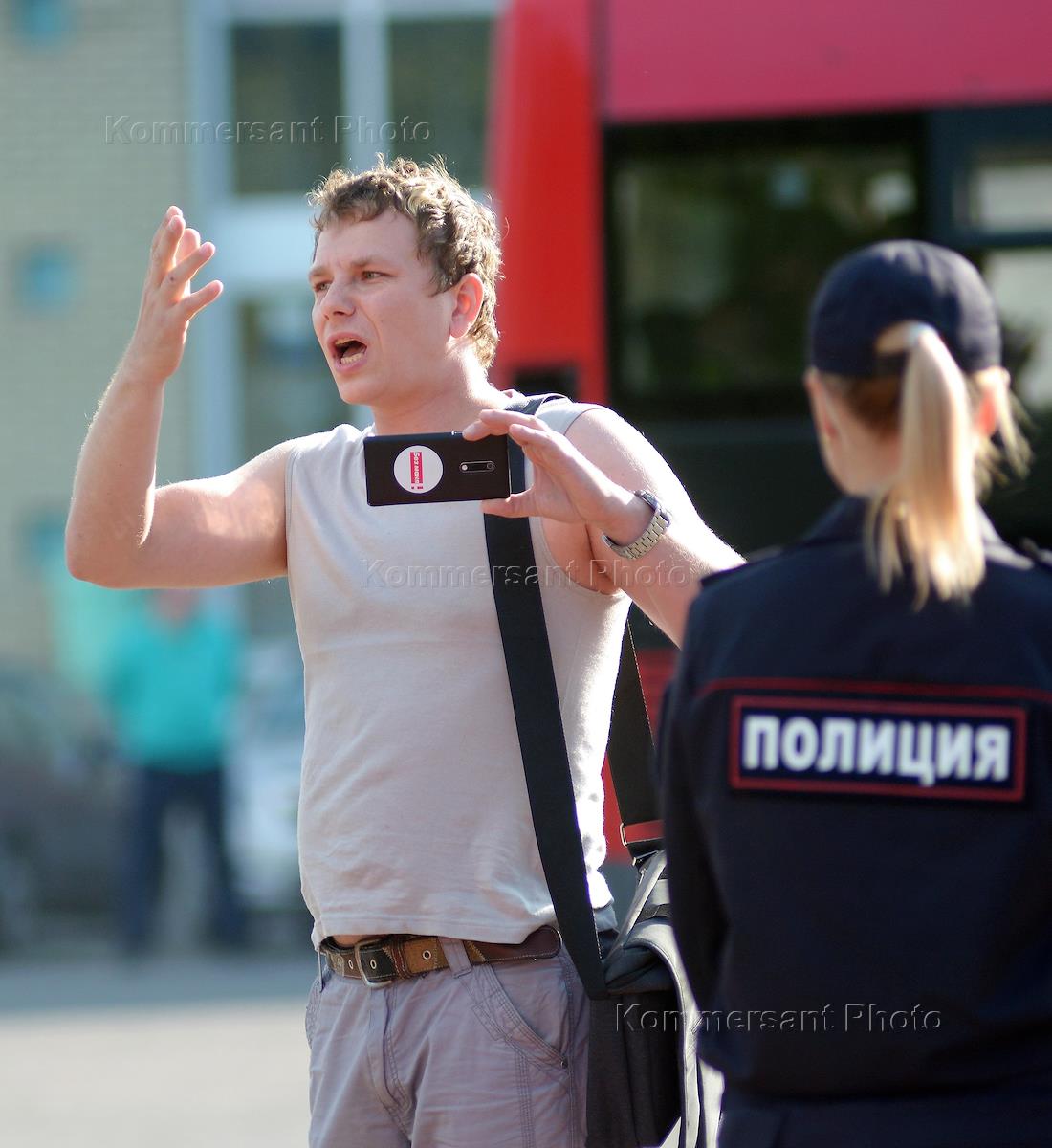 Встреча с избирателями кандидата в губернаторы Алтайского края от партии "Яблоко" Виктора Рау во время предвыборной кампании. Сотрудники полиции.