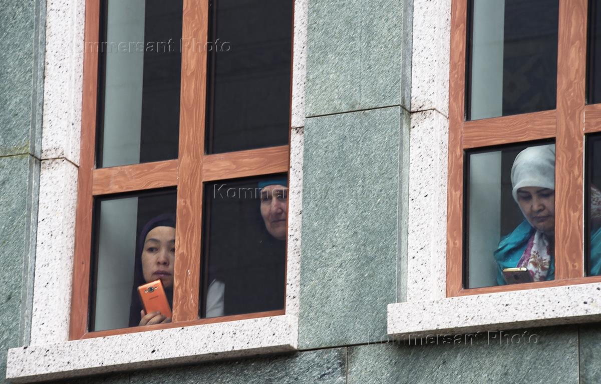 Farewell ceremony of Russian journalist Orkhan Dzhemal who was killed in Central African Republic in Moscow Cathedral Mosque. Islamic women in Mosque.