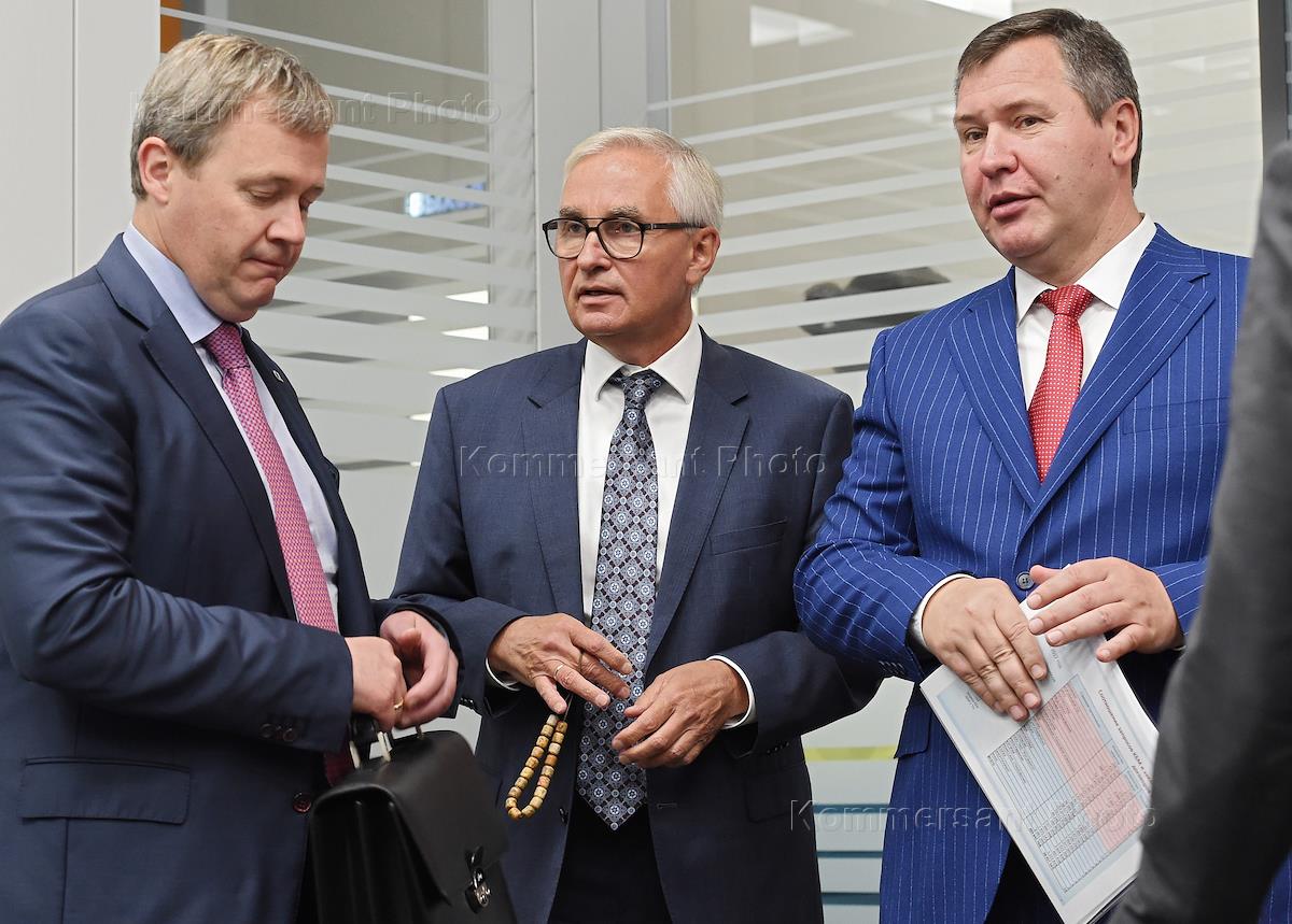 Пресс-конференция по итогам заседания президиума Всероссийского союза страховщиков (ВСС). Слева направо: генеральный директор группы "Альфастрахование" Владимир Скворцов, президент ВСС Игорь Юргенс и исполнительный директор Российского союза автостраховщиков (РСА) Евгений Уфимцев перед началом пресс-конференции.