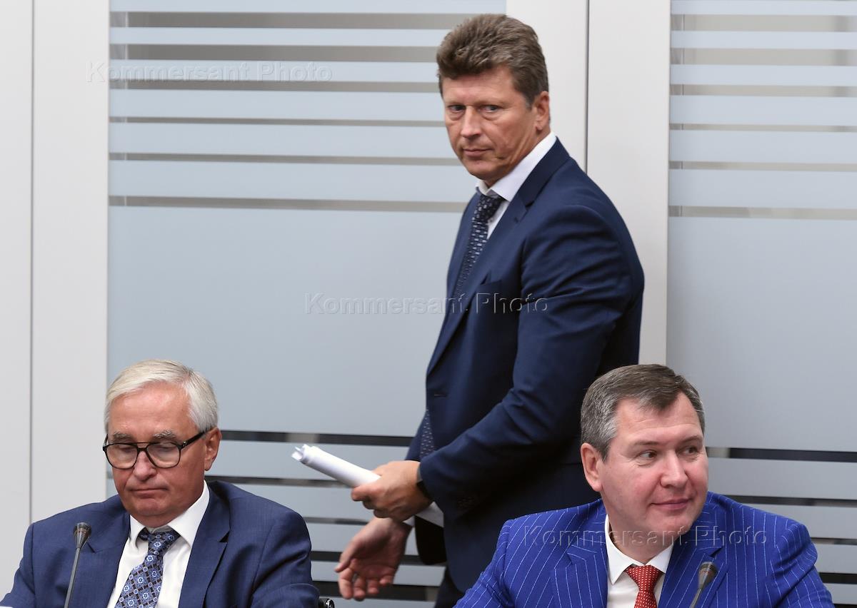 President of the Russian Union of Insurers Igor Yurgens (left) and Executive Director of the Russian Union of Auto Insurers Yevgeny Ufimtsev (right) before a press conference following a meeting of the Russian Union of Insurers Presidium.