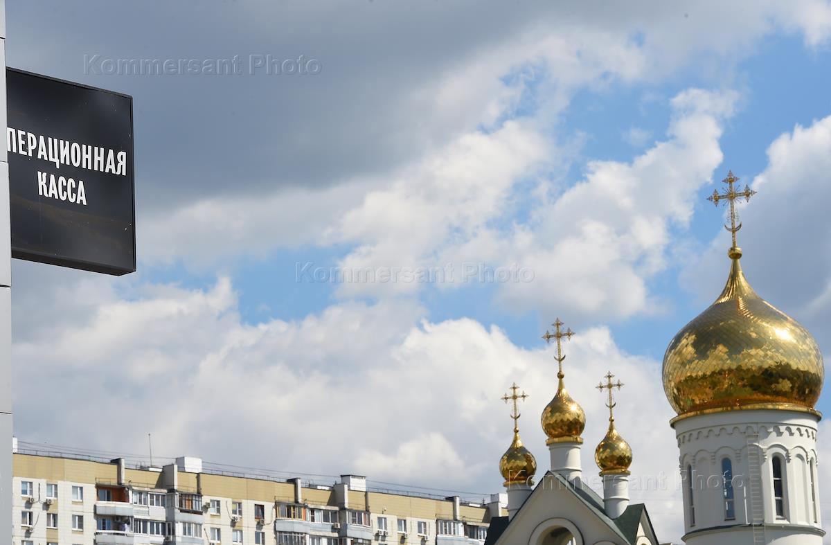 Жанровая фотография. Купола храма на фоне жилого дома.