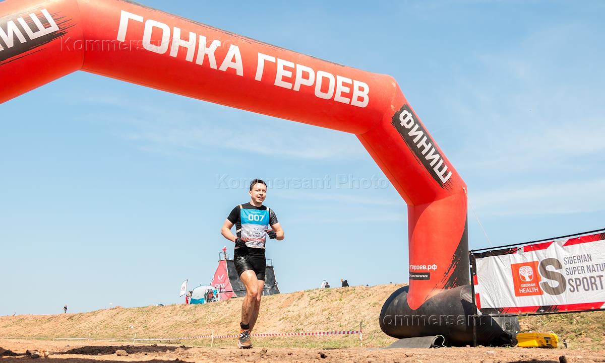Экстремальные соревнования "Гонка Героев 2018" на территорию горнолыжного курорта "Свияжские холмы". Участник забега на финише.