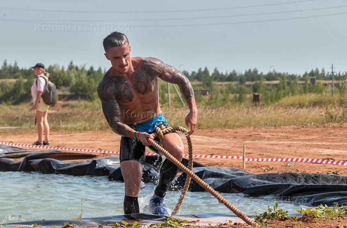 Экстремальные соревнования "Гонка Героев 2018" на территорию горнолыжного курорта "Свияжские холмы". Участник во время прохождения полосы препятствий.