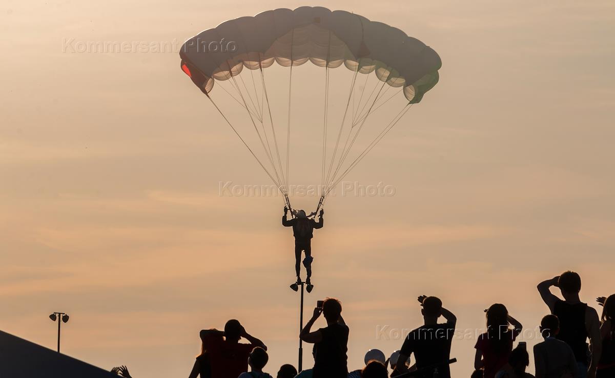 VI авиационный праздник "Я выбираю небо!" на территории Центра семьи "Казан". Парашютист во время приземления.