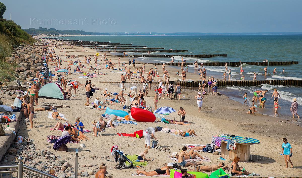 Жанровая фотография. Пляжный отдых на Балтике. Отдыхающие на городском пляже Балтийска.
