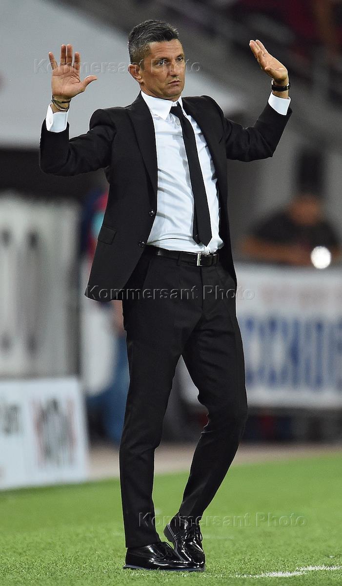 Лига чемпионов УЕФА по футболу. Матч между командами "Спартак" (Россия, Москва) - "ПАОК" (Салоники, Греция) на стадионе "Открытие Арена". Главный тренер команды "Спартак" Массимо Каррера во время матча.