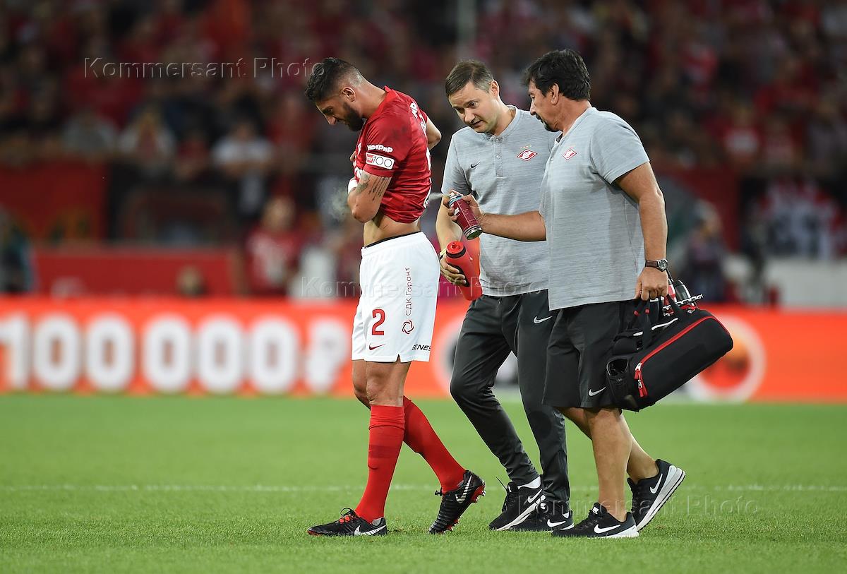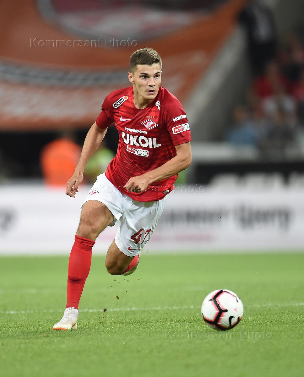 Лига чемпионов УЕФА по футболу. Матч между командами "Спартак" (Россия, Москва) - ПАОК (Греция, Салоники) прошел на стадионе "Открытие Арена". Игрок команды "Спартак" Роман Зобнин во время матча.