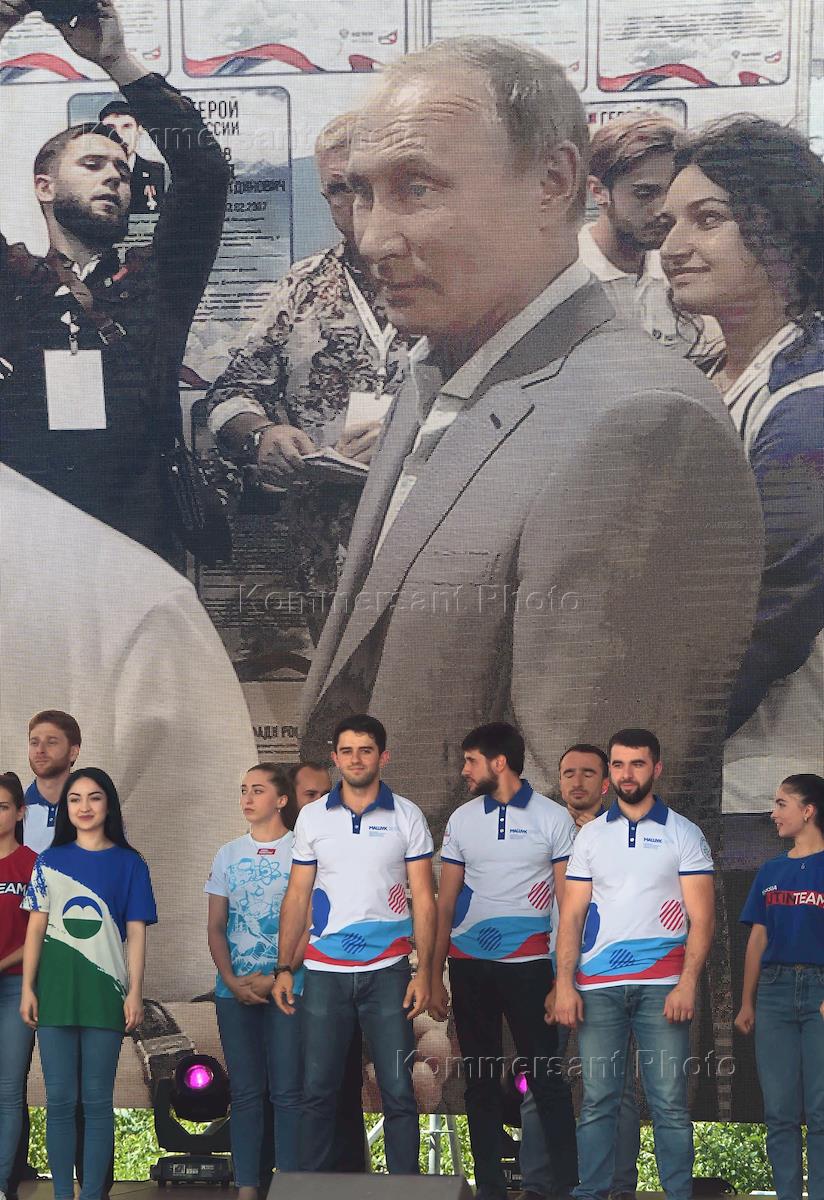 Russian president Vladimir Putin work trip to Pyatigorsk. "Mashuk-2018" north-caucasian educational forum. Russian president Vladimir Putin meeting with a participants of forum.