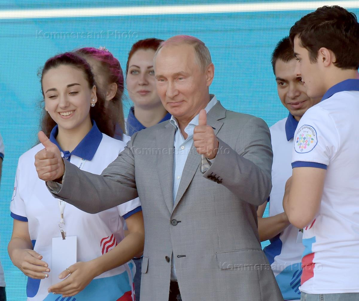 Russian president Vladimir Putin work trip to Pyatigorsk. "Mashuk-2018" north-caucasian educational forum. Russian president Vladimir Putin meeting with a participants of forum.