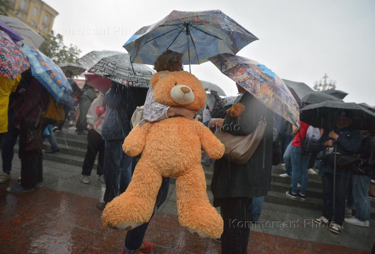 Акция "Марш матерей" в защиту арестованных по делу "Нового величия". Участники акции прошли от Новопушкинского сквера до здания Верховного суда России на Поварской улице с игрушками в руках.