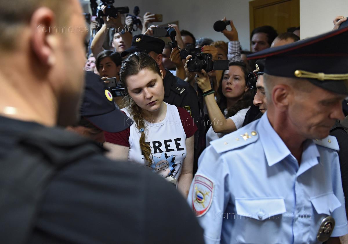 Accused in extremism member of New Greatness movement Anna Pavlikova (right) during the session in Dorogomilovsky court.