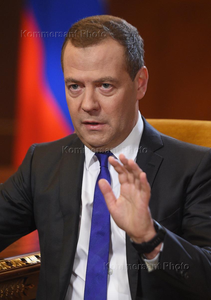 Председатель правительства России Дмитрий Медведев во время интервью.