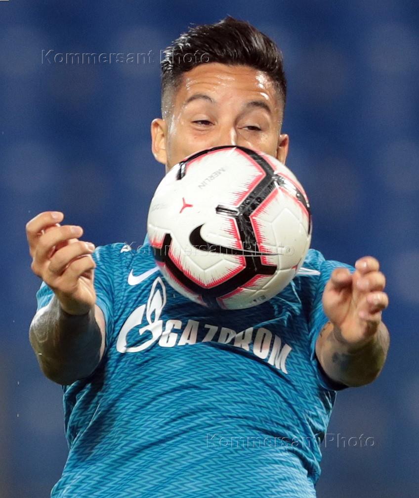 UEFA Europa league 2018/2019. Match between Zenit football club (Saint-Petersburg, Russia) and Dimano football club (Misnk, Belarus) at Petrovsky stadium. Zenit football player Sebastian Driussi during the match.