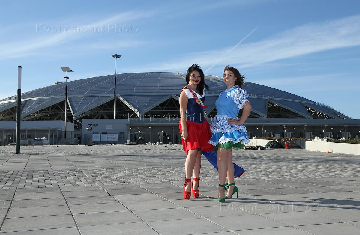 Фотопроект к Чемпионату Мира по Футболу 2018. Няня Елизавета Леванова и работник муниципального земельного контроля Марина Кузнецова на фоне стадиона "Самара Арена"