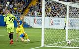 РПЛ. Чемпионат России по футболу 2018/2019. 4 тур. Матч между командами "Ростов" (Ростов-на-Дону) и "Енисей" (Красноярск) прошел на стадионе "Ростов Арена". Вратарь команды "Енисей" Давид Юрченко (слева) во время матча.