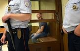Главный специалист ракетно-космической корпорации (РКК) "Энергия" Олег Пыльнов (слева), обвиняемый по делу о мошенничестве, во время заседания Бабушкинского районного суда.