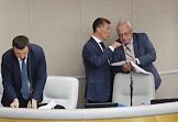 Парламентско-общественные слушания "Совершенствование пенсионного законодательства" в Государственной думе (ГД) России. Слева направо: статс-секретарь – заместитель министра труда и социальной защиты России Андрей Пудов, председатель комитета ГД России по вопросам семьи, женщин и детей Тамара Плетнева и министр труда и социальной защиты России Максим Топилин перед началом слушаний.