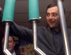Заместитель главы администрации Президента России Владислав Сурков на церемонии зажигания ханукальной свечи во время торжественного приема, посвященного празднованию Хануки (Праздник Освящения). Прием прошел в гостинице "Рэдиссон Славянская".