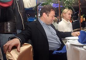 Кинорежиссер и продюсер Федор Бондарчук с женой Светланой во время торжественного приема, посвященного празднованию Хануки (Праздник Освящения). Прием прошел в гостинице "Рэдиссон Славянская".