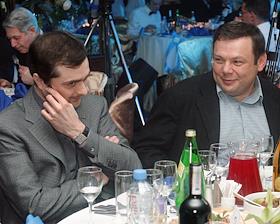 Главный редактор радиостанции "Эхо Москвы" Алексей Венедиктов (слева) и министр образования и науки России Андрей Фурсенко (справа) во время торжественного приема, посвященного празднованию Хануки (Праздник Освящения). Прием прошел в гостинице "Рэдиссон Славянская".
