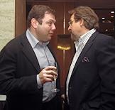 Председатель Совета директоров "Альфа-Групп" Михаил Фридман (слева) и вице-президент "Альфа-банка" Александр Гафин (справа) во время торжественного приема, посвященного празднованию Хануки (Праздник Освящения). Прием прошел в гостинице "Рэдиссон Славянская".